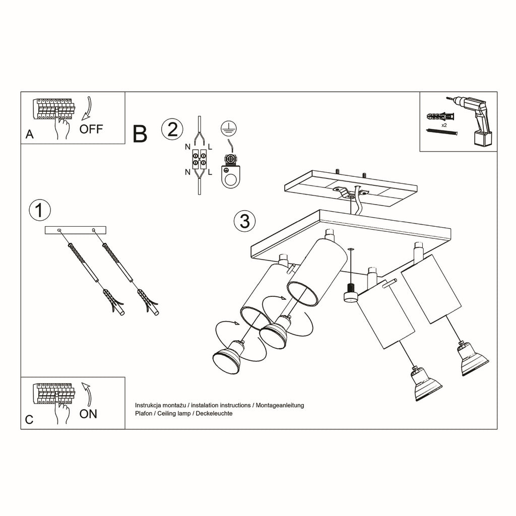 Erleuchten Sie Ihr Interieur mit der Deckenleuchte mit 4 Lampenschirmen, die in jedem Raum montiert werden kann. Die verstellbaren Arme geben Ihnen große Freiheit bei der Gestaltung der Atmosphäre im Inneren - von warmem Halbdunkel bis hin zum vollen Licht, je nach Einstellung der Lampenschirme. Die Deckenleuchte wurde mit dem Komfort des Benutzers im Hinterkopf entworfen - sehen Sie, wie sie sich um Ihr Wohlbefinden kümmert.